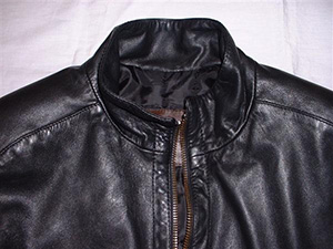 ライダージャケットの衿に腰がなく折れ曲がってシワになるので、硬い芯を入れて立ちがよくなるように仕上げます。かなりイメージが変わりました。